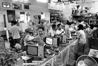 购买电视机——1985年,济南市民在山东省济南市槐荫区段店商场购买12英寸黑白电视机。