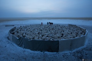 白嘎利《家在草原》30—05冬季的羊圈,羊群过夜要紧密的依靠在一起,从而产生足以挨过寒夜的热量,当清晨牧人将羊群从羊圈赶向草场时,这捂了一宿的热气腾然而出,羊圈瞬间变得云雾缭绕。内蒙古东乌旗道特淖尔嘎查,2009年12月。