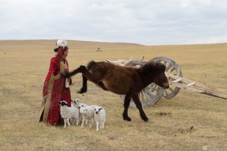 白嘎利《家在草原》30—14草原上,春天是收获的季节,牧民妇女喂养羊羔和马驹,羊羔总是温顺乖巧,小马驹有时候会耍脾气。内蒙古东乌旗陶森淖尔嘎查,2010年5月。