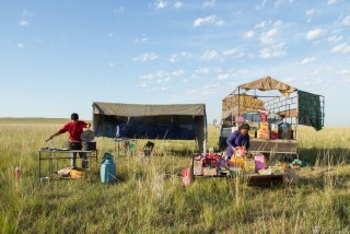 白嘎利《家在草原》30—01转场的蒙古包。夏天牧民转场,入冬前搬来定居点过冬。内蒙古东乌旗商都嘎查,2015年8月。
