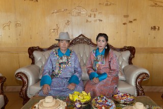 白嘎利《家在草原》30—28.牧人萨如拉与妻子在自己家客厅合影。内蒙古东乌旗达布希拉图嘎查,2016年9月。_