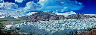 1976年由《人民画报》倡议,长江流域规划办公室(现今长江水利委员会的前身)牵头组织的一支由专业人员和记者组成的考察组,对长江的发源地进行了建国后第一次探索性摄影考察。根据这次考察的结果,并经有关部门确认和批准,正式公布长江的发源地在青海唐古拉山主峰各拉丹东。经重新测算,长江的长度应为6300公里,使长江上升为世界第三大河。上图为各拉丹东雪山下的姜根迪如冰川,远处可见冰川消融形成的辫状小溪,哺育我们伟大祖国的浩荡长江,就从这里的涓涓细流开始了她的万里行程。近些年由于全球二氧化碳排放不断增加形成的温室效应,气温升高,冰川消融加速,2010年央视10频道“探索发现”栏目“二度计划”摄制组,带着茹遂初30多年前拍摄的长江源头的照片,在当年他拍摄大江之源--姜根迪如冰川的同一视点拍摄了一张对比照片,令人震惊的是仅仅30多年,原本壮观的姜根迪如冰川消融得只剩下一点残迹。这幅对比照片发布后,引起国内外媒体的关注和传播。2013年北京电视台高清频道“口述”栏目以“看大河上下”为题,请茹遂初以口述形式制作了当年探寻江河源头的专题节目。