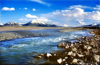长江源流沱沱河,自各拉丹东发源,沿途汇集冰川融化的雪水,逐渐形成一条水量充沛的河流。(拍摄于江源地区)