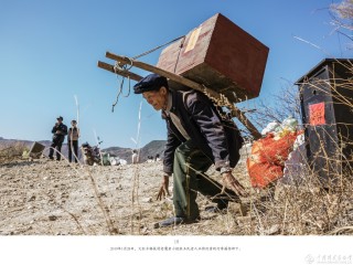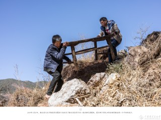 12.2019年1月27日,搬迁前火红乡格枝村老鹰岩小组决定于搬迁前在村子里一起杀猪吃团圆饭。图为两个村民正将杀猪凳搬运到一个平坦的地方。