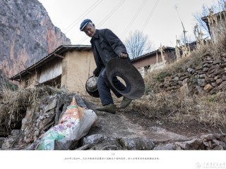 14.2019年1月28日,火红乡格枝村老鹰岩小组搬迁户莫炳清家,老人正将家里的废铁搬运出来。_