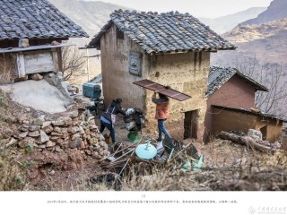 15.2019年1月28日,临行前火红乡格枝村老鹰岩小组的村民正将自己的房屋门窗以及铁件部分拆卸下来,卖给前来收购废铁的商贩,以换取一些钱。_
