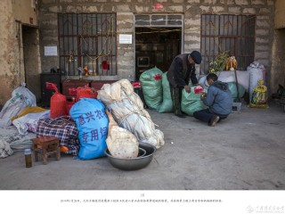 16.2019年1月28日,火红乡格枝村老鹰岩小组张玉民老人家正在收拾要带进城的物资,并在物资上贴上有名字和祝福语的标语。_