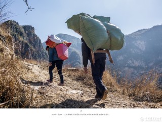 17.2019年1月28日,火红乡格枝村老鹰岩小组村民正将家里物质背运到路边集中。_