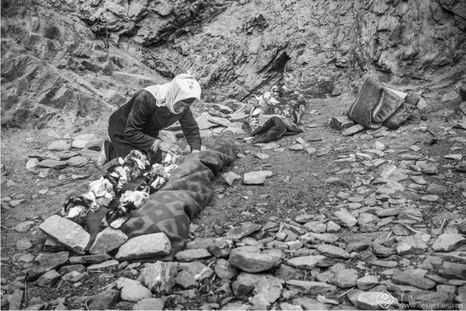 1_春天,乌吉尔一家要带着羊群过河去往夏季牧场,需要做的第一件事就是用毯子包裹小羊羔。