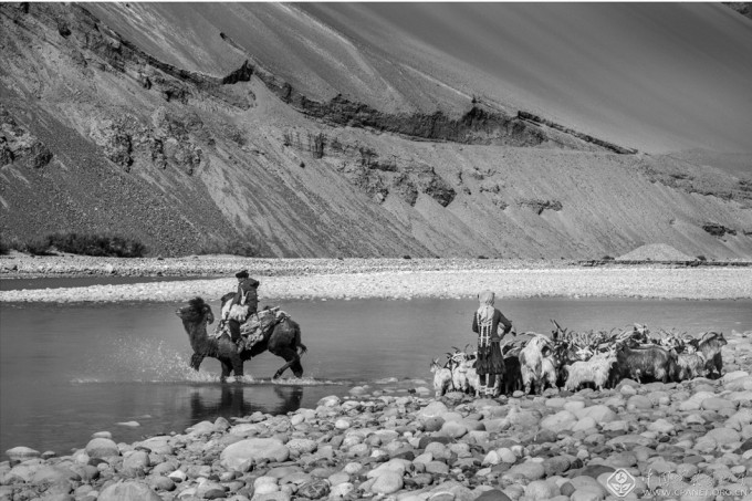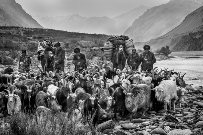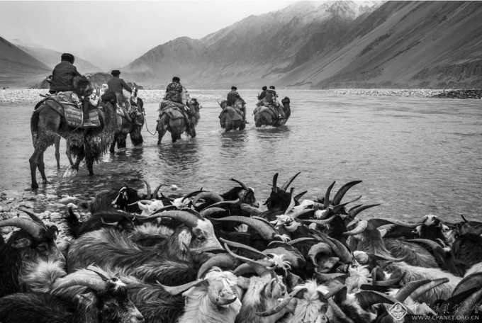 本组照片以牧民乌吉尔一家为主要拍摄对象,历时三年,前后十几次跟踪拍摄,记录了居住在河岸的塔吉克牧民春冬两季带着羊群过河、转场的场景。这条特别的、河流上的牧道是塔吉克人千百年来传统游牧生活的见证,也是他们顽强、互助、友爱精神的体现。随着国家对边疆少数民族地区建设的重视,乌吉尔等牧民陆续迁入新的集中定居点,这条河流上的牧道正在走入历史。