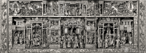 此次展览的木雕影像作品均拍摄于“鲁班行”,它坐落于乔治镇爱情巷,是中国先侨建筑师来到槟城工作时建造的寺庙和建筑公会,至今已有218年的历史。鲁班是建筑师们所膜拜的保护神,后世尊称为“建筑原木工匠艺术的鼻祖”。华侨建筑师们传承鲁班千年智慧,发扬工匠精神,槟城的早期建筑大多出自于他们,建筑风格也被后来的建筑师所沿用。“鲁班行”虽然门面不大,它的存在却有着深远的意义。整个建筑风格非常中式化,像个小庙宇,体现了浓厚的孔子儒家思想。如果门口的招牌都足以让你驻足观看,那么里面保留完整的木雕文物将更加震撼人心。透过这些美到骨子里的古老木雕工艺作品,依稀可以显现华人祖先闯荡南洋的不易和努力拼搏,先辈们将时光雕刻在了木胚的方寸之间,是一代华侨建筑师的匠心打造,凝结着古老的中国智慧,沉淀着千年的东方美学。这些珍贵的物件完好的保存至今,没有消失在时代的洪流中,时至今日仍散发出永不落伍的魅力。