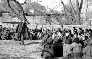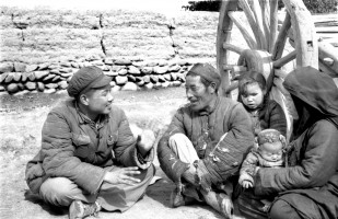 1951年,青海,土改工作队进村后向农民说明来意,宣传土地改革的政策。 茹遂初摄于民和县川口区王家户村