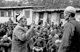 1951年,青海,民和县川口区王家户村土改工作组,召开群众大会宣传土地改革政策。 茹遂初摄