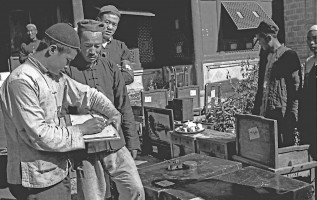 1951年,青海,农民参观没收地主的部分财物,并选择自已需要的东西,然后再根据自报公议的原则进行分配。 茹遂初摄于民和县