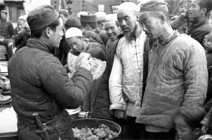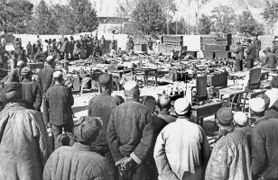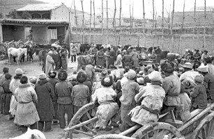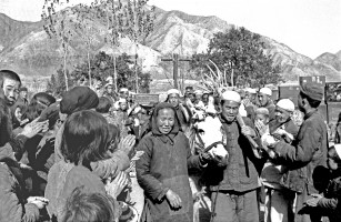 1951年,青海,农民参观没收地主的部分财物,并选择自已需要的物品,然后再根据自报公议的原则进行分配。 茹遂初于青海民和县