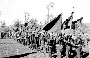 1951年,青海,民兵是农村人民民主政权的有力支柱和坚强的保卫者 。图为土改中的民兵队伍。茹遂初摄