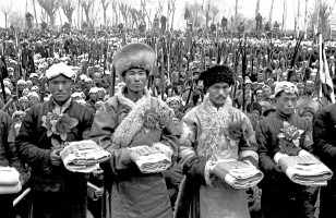 1951年,青海,在民和县五区群众大会上接受奖励的各族民兵。 茹遂初摄