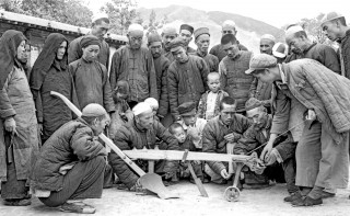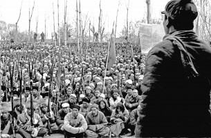 1951年,青海,参加公审大会的民兵 。茹遂初摄于民和县