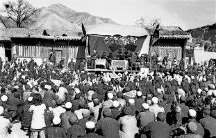 1951年,青海,民和县五区斗争土地主时除土族农民外,还有从远道赶来支援他们的汉、藏、回各族农民一万余人。茹遂初摄