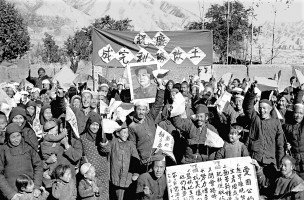 1951年,青海, 分得土地的农民欢呼土改胜利完成。茹遂初摄于民和县