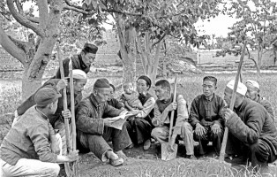 1951年,青海,互助组的农民休息时在地头读报。茹遂初摄