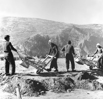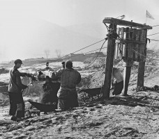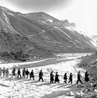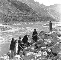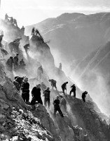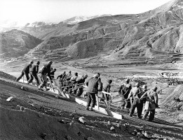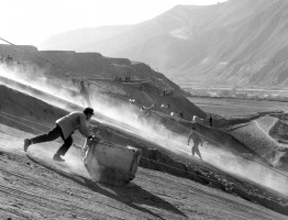 1958年12月间,我接受编辑部任务,怀着激动的心情前往甘肃采访这一伟大工程。当我来到工地时,立即为“大跃进”年代那种特有的热火朝天的气氛所感染,更为农民兄弟为改变干旱贫穷面貌所迸发出的劳动热情所感动。作为一名摄影记者,我应当把农民兄弟不怕困难,决心战胜自然的英雄气概通过一幅照片形象的表现出来,这张照片应成为这组专题报道的主题照片,一定要拍好。思想明确了,下一步就是要寻找表现这一主题思想的典型环境和典型场面。根据工地领导机关的介绍,九甸峡是全部工程最艰巨的一段,战斗在那里的是主要由共青团员组成的青年突击队。当我来到九甸峡时,眼前的景象令人震撼。九甸峡真是名不虚传,两山夹一水形成一条狭长的山谷,从山上俯视,洮河成为一条细细的白色带子。农民兄弟就在这令人望而生畏的悬崖峭壁上,用简陋的工具在坚硬的岩石上开凿运河,这是多么不容易的事情!经过仔细观察,我觉得这里的环境和场面都很典型,就不失时机地拍摄下《引洮河水上山》这幅照片。为了增加层次感和气氛,我采用了逆光,加之劳动时扬起的尘埃,增加了画面的动感和气势。1959年画报以《洮河引上彩云间》为题,发表了这组专题报道,主题照片用的就是这幅(不过用的是彩色片)。随后《中国摄影》杂志1959年第3期也发表了这幅作品,标题为《要把洮河引上山》。1959年10月间这幅题为《引洮河水上山》的作品先在匈牙利举行的第三届国际艺术摄影展览上获得金牌奖,紧接着又在德意志民主共和国举办的“社会主义胜利”摄影比赛中获一等奖,当时苏联的《真理报》和《苏联摄影》也都发表了这幅作品。其后又在《中国摄影》1957-1959年优秀作品评奖中获一等奖。照片虽接连获奖,但以血肉之躯奋战在引洮工地上的农民兄弟,却未能圆了他们战胜干旱、摆脱贫困的梦想。遗憾的是由于决策者的冒进,超越了现实的可能性,两年后,曾被视作伟大创举的的“引洮上山”工程被迫悄然下马,十几万农民兄弟流血流汗,甚至牺牲生命为之奋斗的梦想就这样付诸东流,极大地挫伤了农民群众的积极性。《引洮河水上山》这幅摄影作品,与当初拍摄时的愿望相反,成为那个“一天等于二十年”、“跑步进入共产主义”的大跃进年代,一曲可歌可泣的时代悲歌。今天,每当我看到这幅作品时,作为亲历者触景生情,真是感慨万千。