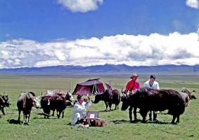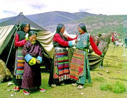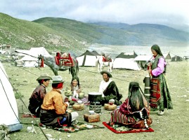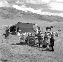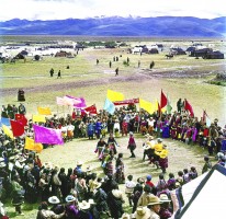 1963年,我第一次去西藏时,拉萨还未通航,我走的是青藏公路,乘的是部队后勤运输连运送物资的卡车,沿途都有兵站,食宿没有问题,不过运输连是集体行动,若有车子抛锚整个车队都得停下来,从西宁到拉萨走了10天。这次去西藏主要的采访任务是反映民主改革后西藏的变化。我先去藏北当雄牧区,正好赶上一年一度的赛马会。赛马会是草原上的盛会,牧民从四面八方赶来,一时间草原上出现一个热闹的帐篷城,对于采访来说,也是一个绝好的机会。我在这里逗留了将近10天,拍摄了赛马会期间各种活动和牧民生活。