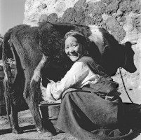 1963年,西藏,大半辈子以乞讨为生的蓋桑,民主改革后分到了房子、土地和牲畜,现在她家已有奶牛三头,耕牛一头,毛驴四头。   茹遂初摄于西藏泽当原凯松庄园