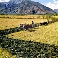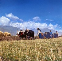 1965年,西藏,民主改后,西藏的翻身农奴组织了互助组,这是互助组在秋耕。茹遂初摄