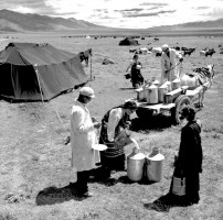1963年,西藏,随着畜牧业的发展,当雄牧区建立了奶粉厂,图为奶粉厂在收购牧民的牛奶。茹遂初摄