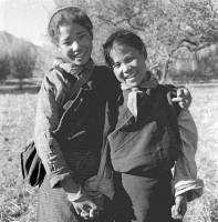 1963年,西藏,昔日农奴的子弟,民主改革后有了上学读书的机会。图为小学生桑木卓玛和策仁多坞。茹遂初摄于西藏原凯松庄园