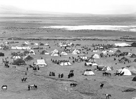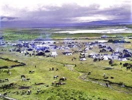 1963年,西藏当雄牧区赛马会期间草原热闹非凡,从四面八方赶来的牧民在草原上形成了一个帐篷城。 茹遂初摄