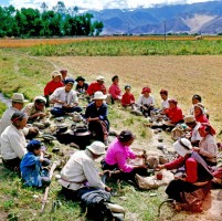 1965年,西藏,互助组田间休息时。 茹遂初摄于堆龙德庆