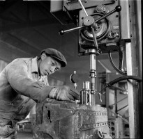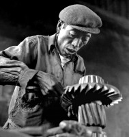 1965年,西藏,拉萨汽车修配厂贫苦喇嘛出身的工人札喜平措,在汉族工人的帮助下,现在已基本上掌握了汽缸的塘、磨技术,可以独立进行工作了。 茹遂初摄