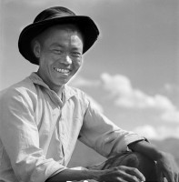 1963年,西藏,人民画报记者茹遂初在西藏泽当原凯松庄园采访时留影。  张冠荣摄