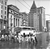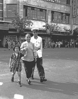 1964年,上海,交通民警护送儿童过马路 。              茹遂初摄