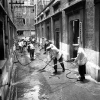 1964年,上海,民警正在和里弄妇女一起打扫环境卫生。茹遂初摄