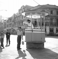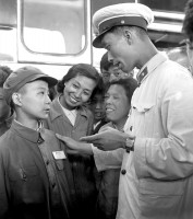 1964年,上海,交通民警在耐心的回答行人的询问 。茹遂初摄