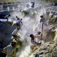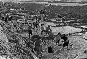 1964,新疆和田, 六十年代初,新疆和田地区开展了农田基本建设,修建干支渠总长达五千多公里。这是皮山县红光人民公社新建的一条渠道。  茹遂初摄