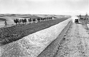 1964年,新疆和田,穿越戈壁、沙漠的渠道。1958年以来和田地区共修建总长达一万七千公里的干、支、斗渠,改变了和田地区干旱缺水的面貌。 茹遂初摄