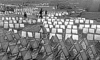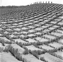 1964年,新疆和田,治服流沙,保护农田。图为皮山县卫星公社在沙丘上设置的固沙障。  茹遂初摄
