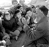 1964年,新疆和田,去北京见过毛主席的维吾尔族农民库尔班_吐鲁木,経常以自已亲身经历,向青年一代进行阶级教育。  茹遂初摄