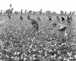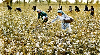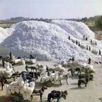 1964年,新疆和田, 墨玉县五一公社的社员正在拾棉花,今年(1964年)这个公社棉花亩产可达120斤。 茹遂初摄
