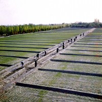 1964年,新疆和田,克里扬渠全部采用卵石舖砌,这样可以减少渗漏,大大提高了水的利用率。   茹遂初摄