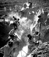 1964年,新疆和田, 奋战在墨玉县马奎亚大渠工地上的维吾族社员。茹遂初摄