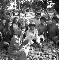 1964年,新疆和田,皮山县幸福公社皮牙曼管区第二大队第五生产队社员在学习毛主席著作。                          茹遂初摄
