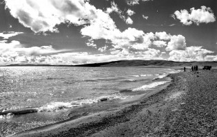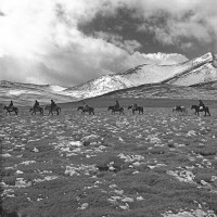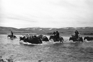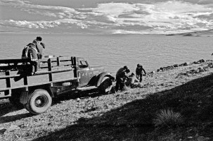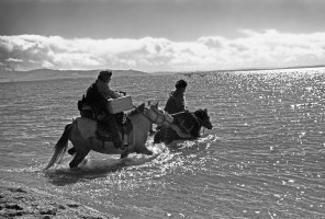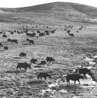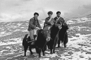 1972年-,采访小组乘汽车沿札陵向南,到达黄河流入札陵湖的入口处,从这里开始采访小组将换乘马匹,赶着一群驮运装备和给养的牦牛进入茫茫的大草原。      茹遂初摄