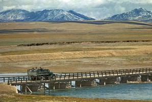 1972年, 通向札陵湖的简易公路桥,是黄河上游的第一桥。茹遂初摄