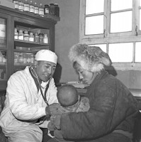 1972年,在党和政府的关怀下,牧区的卫生事业初步的建立起来,图为麻多公社的藏族医生秦学德在为群众治病。他是从北京医学院毕业后来到这个远离城市的偏僻牧区。茹遂初摄