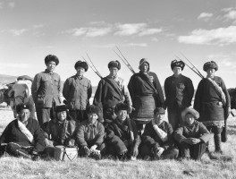 1972年,1972年10月黄河源采访组和支援的藏族民兵出发前合影(前排左起第二人为本报记者茹遂初,后排右起第二人为本报编辑贾玉江)。茹遂初摄